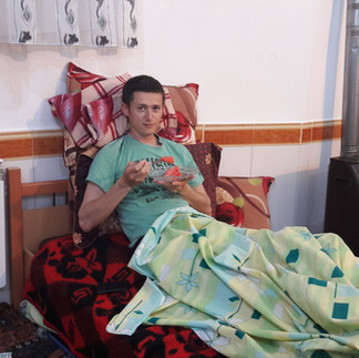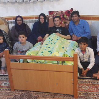 Als wir in Malekan, dem Unfallort, ankommen, hält der Krankenwagen vor einem typisch iranischen, mehrstöckigen Wohnhaus. Die Krankenpfleger öffnen die Türen, gehen ins Treppenhaus, ziehen die Schuhe aus (ja - das wird hier sehr ernst genommen!) und wuchten die Trage in den dritten Stock. Mitten im großen Wohnzimmer steht ein Bett - extra für mich aufgestellt. Hier werde ich also die nächste Zeit verbringen. Ich hatte auf ein Haus mit Garten gehofft, da uns bewusst war, dass dieser Mann wohlhabend sein muss. Allerdings gibt es hier nur auf dem Land Häuser mit Garten. Reiche Leute haben schön eingerichtete Wohnungen in der Stadt, mit den typisch für Iran dicken Vorhängen oder verdunkelten Fenstern. Die Privatsphäre ist hier enorm wichtig.