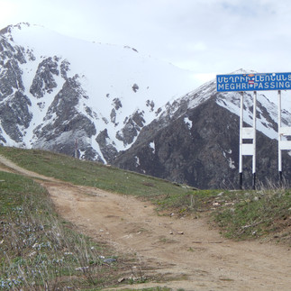 Später fahren wir entlang der Grenze zu Nachitschewan und da sieht man deutliche Spuren vom Krieg. Überall Militärgebiet und Militärfestungen. Aber auch die Landschaft ändert sich und wir fahren hoch in die Berge. Bis zu der Iranischen Grenze überqueren wir mehrere Pässe von über 2000m. Nur noch eine Nacht vor der Einreise in den Iran! Und die hat es in sich... Wir wollen euch nicht vom Wildzelten in Armenien abraten, aber: Seid vorsichtig. Wir waren schon ziemlich weit südlich, wo die Grenze zur autonomen Republik Nachitschewan ganz nah zur Straße verläuft. Abends scheint hier in den Bergen alles friedlich zu sein: Auf einet Passstraße finden wir eine Wiese auf einem Hügel, nicht von der Straße einsehbar. Ich sehe vor dem Zeltaufbau etwas metallisches aus dem Boden ragen und sage Susi, sie soll aufpassen, wo sie hintritt nicht dass sie stolpert, denn da ist was im Boden. In der Nacht schläft sie seelenruhig beim Quietschen der Bremsen von den LKW die sich auf den Serpentinen hoch und runter quälen, ein. Das kann ich nicht, denn das Bremsen-Quietschen wird immer wieder von Koyoten-Geheul unterbrochen. Sehr beeindruckend, das habe ich noch nie erlebt. Das sage ich ihr natürlich erst am nächsten Tag. Wir trinken unseren Morgenkaffee, frühstücken und kaum ist die erste Kurve gefahren sehen wir ein Warnschild: Achtung, vermintes Gebiet. Oh oh.. da rutscht mir das Herz in die Hose bei dem Gedanken an das metallische Ding neben unserem Zelt, worüber ich gestolpert bin. Zusätzlich wächst die Aufregung vor der iranischen Grenze: Es ist die erste, an der wir das Carnet de Passage benötigen werden und wo ein Visum nötig ist.